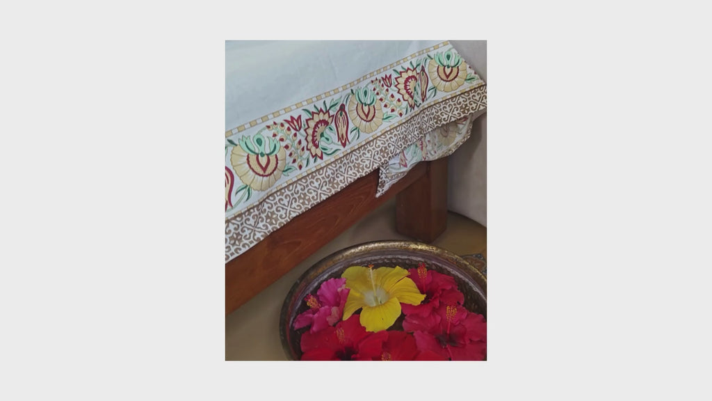 Elevate your bedroom decor with this beautifully crafted bedsheet set from Moriyo Decor, offering a blend of vibrant patterns and traditional craftsmanship for a stylish and comfortable touch.