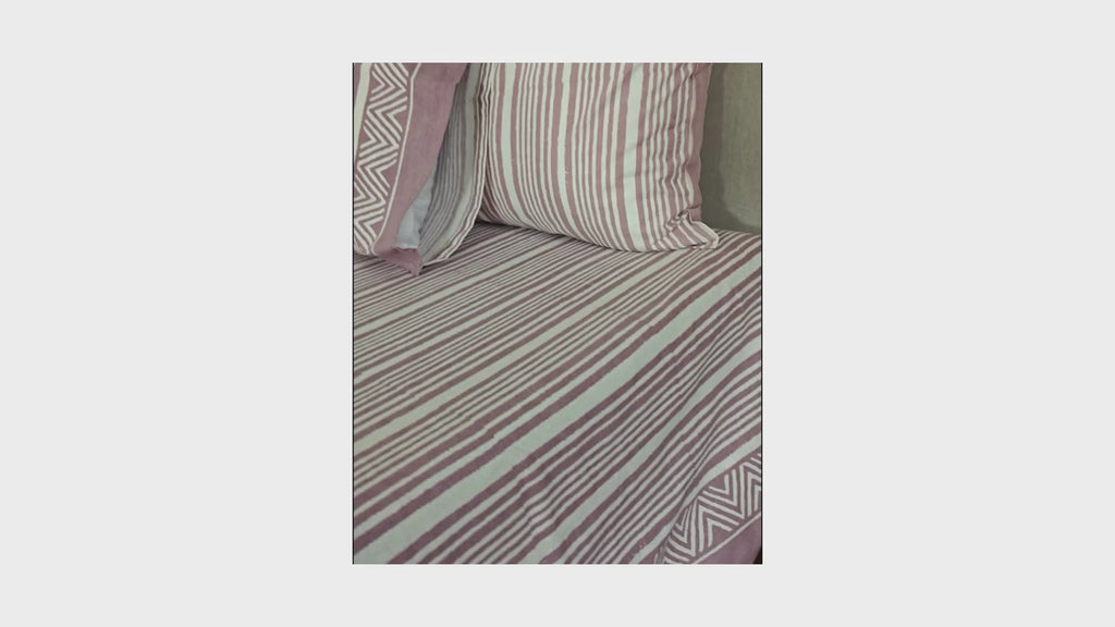 Geometrical Pink Striped Rajasthani Hand Block Printed Bedsheet Set – Premium Cotton by Moriyo Decor