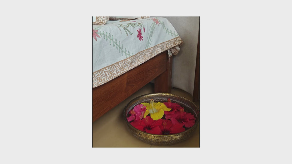 Enhance your bedroom decor with this beautifully crafted bedsheet set from Moriyo Decor, combining sophisticated patterns and traditional artistry for a luxurious and elegant touch.